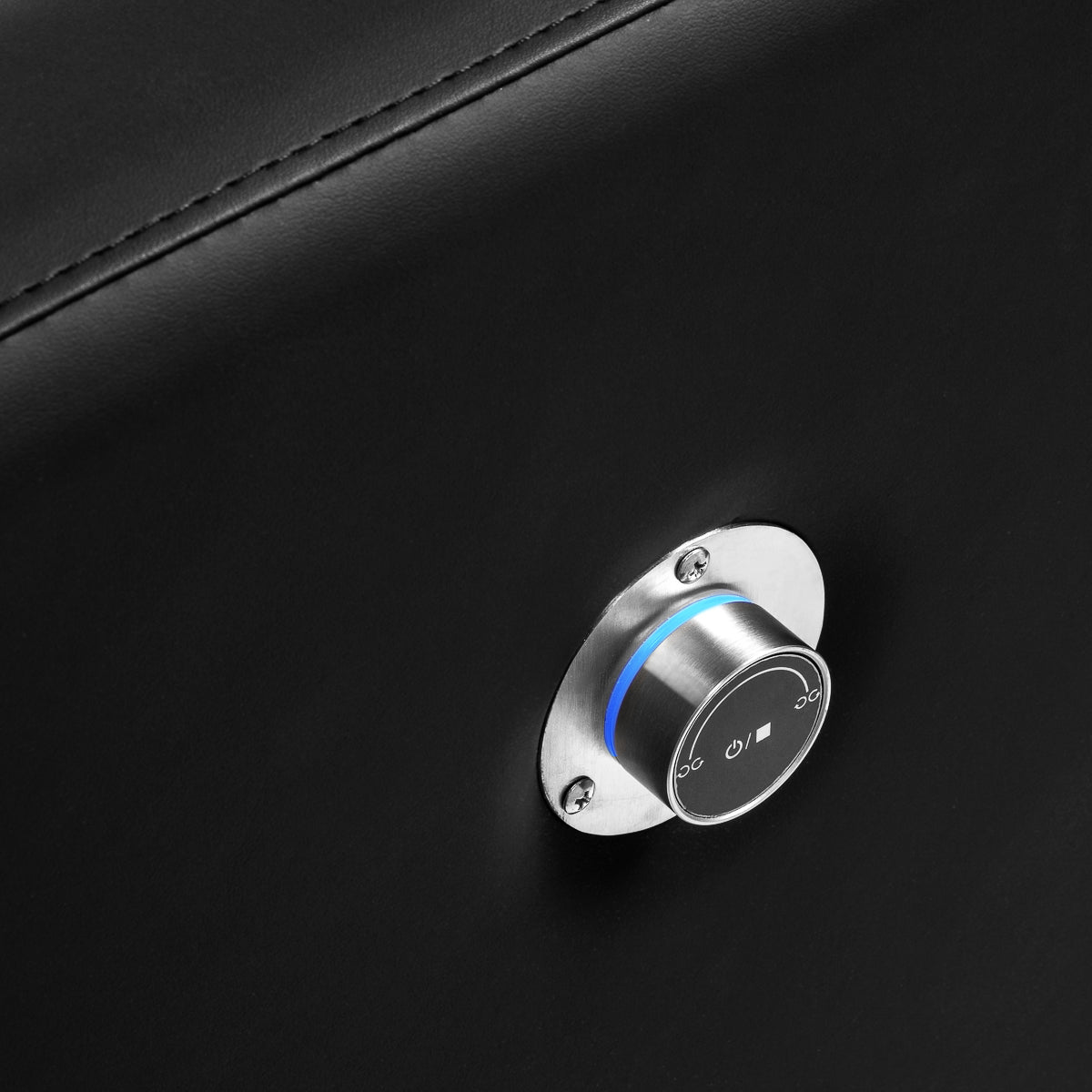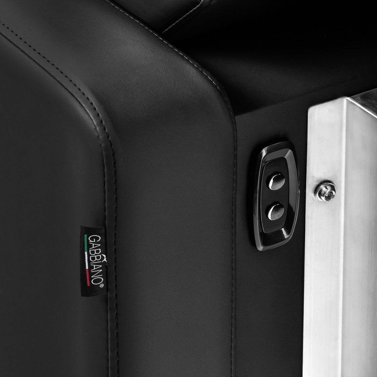 Die elektrische Beinauflage des Friseur Waschbeckens Gabbiano Sylvia wird bequem über die an der Rückseite des Stuhls angebrachten Bedienknöpfe gesteuert. So kann die Position präzise an die Größe und Bedürfnisse jedes Kunden angepasst werden. Die ergonomische Liegeposition entlastet den Rücken und sorgt für ein entspanntes Gefühl, besonders bei längeren Behandlungen. Die Massagefunktion im Rückenbereich rundet das Wellness-Erlebnis ab. Sanfte, rotierende Rollen massieren den Rücken entlang der Wirbelsäule und lösen Verspannungen. In Kombination mit einer wohltuenden Kopfmassage schaffen Sie so ein unvergessliches Verwöhnerlebnis für Ihre Kunden.