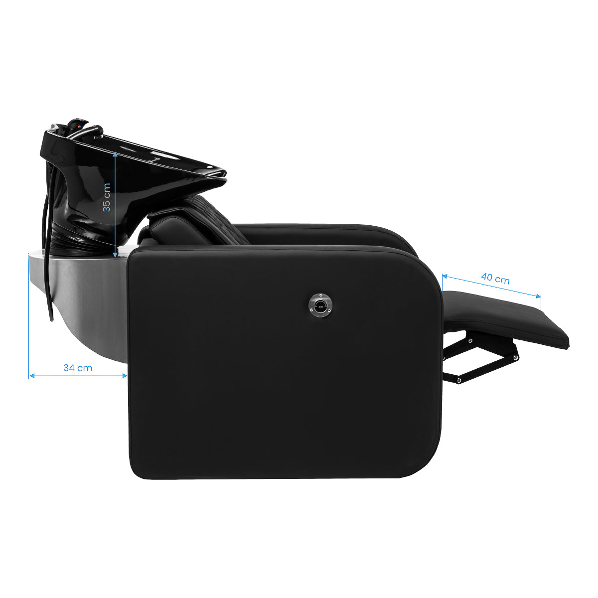 Das Friseur Waschbecken Gabbiano Sylvia mit elektrischer Beinauflage und Massagefunktion in Schwarz bietet Ihren Kunden höchsten Komfort und Entspannung während der Haarwäsche. Dieses luxuriöse Waschbecken vereint elegantes Design mit praktischer Funktionalität und ist eine Bereicherung für jeden Friseursalon. Die elektrische Beinauflage lässt sich individuell an die Bedürfnisse Ihrer Kunden anpassen und sorgt für eine ergonomische Liegeposition. Die integrierte Massagefunktion verwöhnt Ihre Kunden zusätzlich und trägt zu einem rundum wohltuenden Erlebnis bei. Investieren Sie in die Zufriedenheit Ihrer Kunden und steigern Sie gleichzeitig die Effizienz Ihres Salons mit dem Gabbiano Sylvia Friseurwaschbecken.